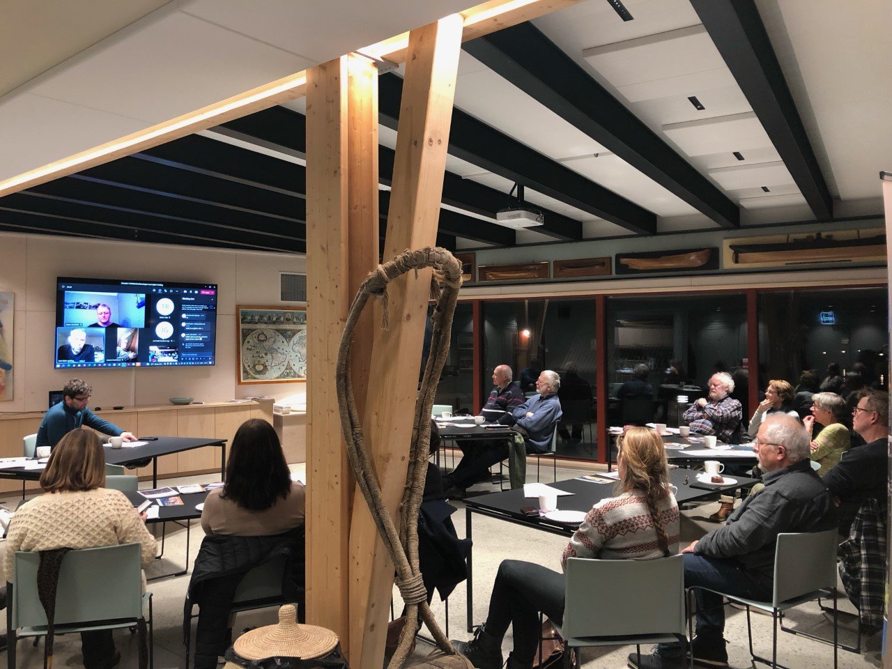 God stemning på årsmøtet som ble holdt både fysisk på Lyngørfjorden Kystkultursenter og via teams for de som ikke hadde muligheten til å delta fysisk. Foto: Nina Kjølsen Jernæs.