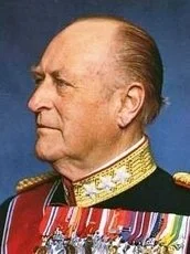 Forut for motorsyklister passerte den offisielle bilen til slutt under nesen vår. Jeg viftet med mitt lille flagg og trodde jeg så Curd Jürgens, den fasjonable sosialisten på den tiden. Men det var virkelig Kong Olav V som hilste oss i sitt fulle seremonielle antrekk. Ved siden av ham virket Clarin Mustad gjennomsiktig. Eieren av hesteskosøm fabrikken i Duclair var, ble det sagt, “fetteren” til Kong Olav V. Som sådan hadde han invitert ham til sin Yainville-herregård, tidligere eid av filmskaperen Sacha Guitry - en god venn av kunsteren Claude Monet. Faren min skrøt av å ha lagt parkettgulvene i dette huset.