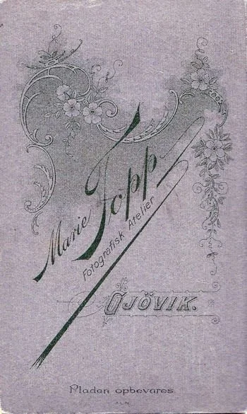 Et bilde signert "Marie Topp, Gjøvik" innfelt. Den viser tre søstre bosatt på Røyse mølle. Mathias Topp foregikk med urette datterens kall og store talent. Bildene hennes er nå museumsgjenstander.
