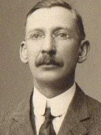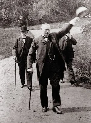 Hans Mustad 1. januar 1910. Bak ham: Mathias Topp.