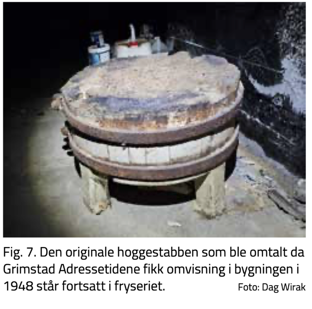 Funksjonelt var bygget en revolusjon i Grimstad-målestokk. Med moderne kulde anlegg og lagringskapasitet for store fiskemengder, bidro fryseriet til å forlenge levetiden til råvarene, effektivisere distribusjonen og styrke konkurranseevnen til lokale aktører. Samtidig hadde bygget fasiliteter for fiskemottak og salg, og ble dermed en viktig møteplass for både yrkesfiskere og handelens folk. Det var et teknologisk nav, men også et sosialt knutepunkt. Grimstad fryseri var det første i Norge som også hadde spesialservice for husmødre. «Her vil det bli plassert vekt, kokeplate, hoggestabbe, innpakningspapir etc. for de de som leier fryseskap», fortalte Ingeniør Meyer da Grimstad Adressetidenes journalist ble vist rundt i det nye anlegget 2). Hoggestabben det henvises til står fortsatt i byggets andreetasje.